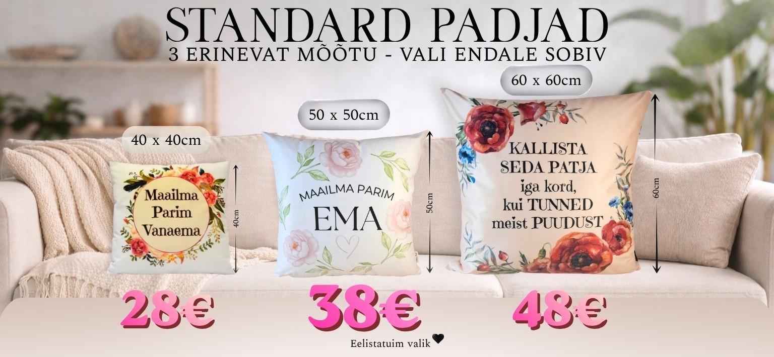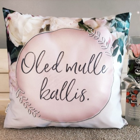 Padja HINNA SEES on kõik vajalik, et luua üks tõeliselt armas emadepäeva kingitus: KUJUNDUSTEENUS, PADJAKATTE MÕLEMA POOLE TRÜKK ja SISUPADI.