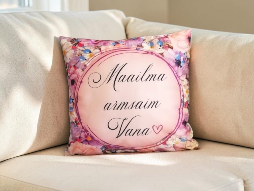 Lisaks fotole on võimalik padjale trükkida ka isiklik sõnum, luuletus, lemmik loom/lill/maastik või tsitaat, mis annab kingitusele veelgi sügavama tähenduse.
